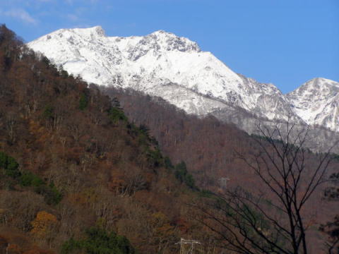 高速道で水上に近づくと、前方に新雪を冠った谷川岳が見えてきました。事前に谷川登山センターに問い合わせた際には、雪は積もっていないという話でしたが、土合に着いて聞いたところ、前日、前々日の寒波で雪が積もったそうです。 新雪を求めて来たとはいえ、現実に雪の峰に対面すると緊張が走ります。 天神尾根は短いとはいえ、私たちにはちょうど良く変化に富んだ充実した山行でした。朝の快晴が一時間と持ちませんでしたが、ピークに登る際は、強風でガスが飛ばされ、青空が拡がり全くツイテいました。 下山して帰京組と温泉組に別れましたが、翌日午後、紅葉の水上に20cmの積雪があり、はからずもこの日が秋山のラストシャンスだったのです。 |