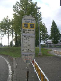 たどり着いたバス停 靴紐を結びなおして、あんな大きな目標にたどり着けない訳はないと、歩き出したが高速道路は見えるがインターの所在が分からない。 聞く人もいない田んぼの中を、べそをかきながらかっきり30分歩き回ってたどり着いたのが、今回の一番のシゴキでした。しかし高速バスは時間は正確、リクライニング・シートに身を任せ。うとうとするのは実に快適でした。 |