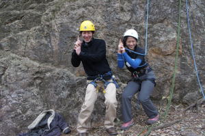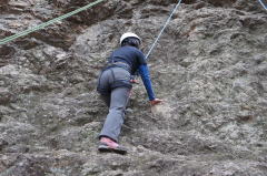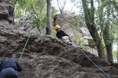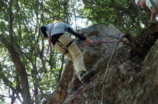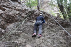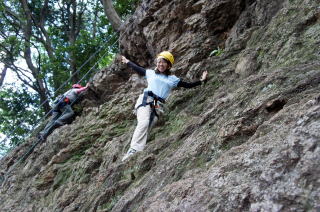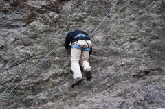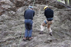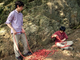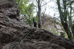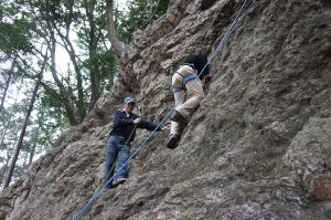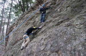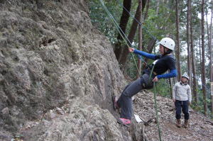 | 増田君は登り、渡辺さんは下降です。 | 上記を何回も繰り返した後、昼食になり午後はクライムとアップザイレンのトレーニングです。 | 増田君 |