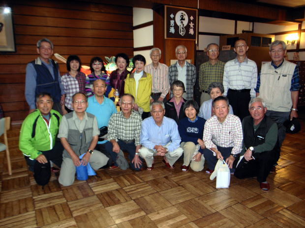 | 日時:10月10日(木)11日(金) 会場;八甲田山酸ヶ湯 参加者:(敬称略) 東OB、恩田OB、金子(弘)0B、竹内OB(各37年卒)、竹内夫人、栗又OB、古林OG、小久保OG(各38年卒)、中込OB(39年卒) 笠原OB、関根OB(各40年卒)、笠原夫人、関根夫人、金子(治)(41年卒)、高岡OB(42年卒)、高岡夫人、斎藤(45年卒) 上田OB、上田OG(各34年卒) 計19名 『八甲田の紅葉は草原から湿原、そして山頂にかけての各々の紅葉が素晴らしく、当地を訪れた総ての人々が感嘆しています。 八甲田山麓の湯量豊かな‘酸ヶ湯’に浸かり、紅葉をタップリ味わう旅にしましょう。』 との幹事の栗又、中込OBの案内状に、期待を膨らませて秋を待ちましたが、10月に入り太平洋に台風24号が発生した時から、 悪い予感がしていましたが、その予感は当ってしまい、‘酸ヶ湯’での懇親会の翌日の紅葉の八甲田トレッキングは、大雨により中止と なってしまいました。 毎年開催されている気象部のOBG会では、雨でどこにも行かれずに朝食後解散したのは、これで3回目ですが、今回は遠隔地での 懇親会開催のため、参加者たちは、この八甲田に合わせて森吉山や八幡平、岩木山、奥入瀬、十和田山など事前、事後に旅行した方や 棟方志功記念館や弘前散策など秋の津軽を味わいました。 |