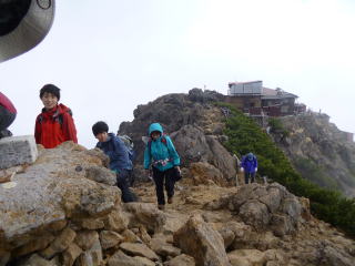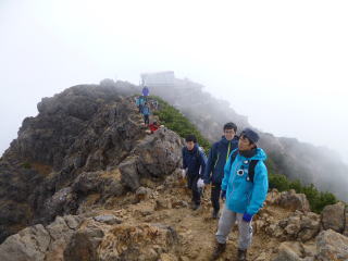 | 赤岳北峰の頂上小屋。 | 赤岳ピーク直下。 | ピークに到着。 |