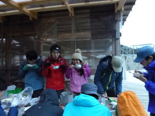 | 約1時間半に渡ってフリーで上下を練習しました。 | 昼になったので昼食です。 | 熱い飲み物が体に沁み通ります。 |