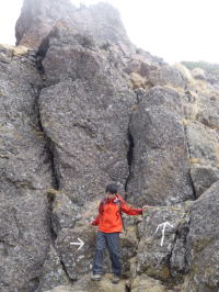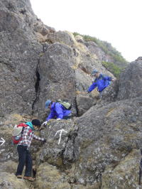 | ピーク直下の岩場。 | ||