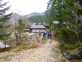 | 北沢を下る。堰堤まで車が入っている。 | 美濃戸への下り | 美濃戸山荘に到着。 |