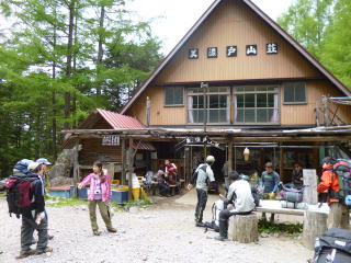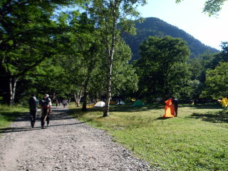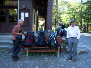 | 入山者は少なく、下山者の方が遥かに多いです。 | 徳澤に着きました。相変わらず美しい所です。 | 荷を見るとぞっとします。学生の夏合宿ではなく、OBの夏合宿みたいです。 |