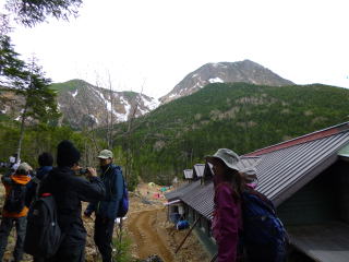 6月2日天気 曇り 3:00起床。夜間雨が降ることはなかった。しかし、山頂は雲に隠れたり、出たりを繰り返していた。初めてのテント泊で寝れた人、寝れなかった人それぞれであったようだが、みんなすぐに起きてくれた。朝早いので周りの人に迷惑を掛けないように、朝食の準備をした。朝ご飯はゆできゃべつとラーメンだった。きゃべつ一玉をみんなで食べたので不足しがちな野菜は沢山取れたはず。ご飯を食べていると、朝から登り始めた豊田さん夫妻が赤岳鉱泉に到着した。 5:15赤岳鉱泉発。二日目が始まった。サブザックでの登山なのでみんな気持ちが楽だった。出発して、10分くらいで雪があった。まだ日の当たらない樹林帯は雪が残っていた。行者小屋までは、休憩も取らずもくもくと歩いた。小屋について、休憩を10分ほどとった。 6:05行者小屋を出発。地蔵尾根経由で赤岳を目指した。樹林帯を抜け、高度が上がってくるとみんなのテンションが上がってきた。先日の山行で膝を痛めた井村さんが心配であった。稜線に出ると風が出てきた。途中休憩できそうなところで二回ほど休憩をとり、赤岳展望荘に着いた。 7:16に赤岳展望荘を出発した。この後の岩場は雨が降ったら嫌だなと思った。山頂はガスの中で見えたり、見えなかったりであった。しかし、みんな元気そうに登っていて良かった。 7:50に山頂着。増田さん以外は楽しそうに写真を撮ったり、山頂を満喫していた。高所恐怖症の増田さんには申し訳ないが、仕方ない。30分ほど休憩した後、下山開始。 8:20山頂発。岩を落とさないように注意しながら降りた。途中から階段が出てきて嫌になった。段差が大きいのは辛い。行者小屋までは一回休憩を取り、あとは淡々と降りた。 9:40行者小屋着。お腹が空いたのでお昼用に購入したパンを食べる。行者小屋は登山客でにぎわっていた。 10:00行者小屋発。赤岳鉱泉までは来た道を戻る。 10:30赤岳鉱泉着。小屋に預けていたザックを受け取り、片付けをして下山。13:20のバスに乗れるように頑張って下山しようと決意を固める。 11:05赤岳鉱泉発、下山は荷物も軽くなったし、気持ちも楽だったのでぐいぐい進んだ。休憩を取ることもなく、美濃戸山荘まで歩いた。美濃戸山荘で、休憩を取り、車で来ていた豊田さん夫妻はここから車。美濃戸口で待っていてくれた。 13:00美濃戸口。ここで反省会をして解散。無事に13:20のバスに全員乗ることができた。
