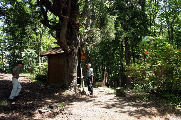 | 山刀伐峠(なたぎり峠)です。峠には樹齢350年の杉の巨木と子宝地蔵堂がひっそりと建っています。 | ||