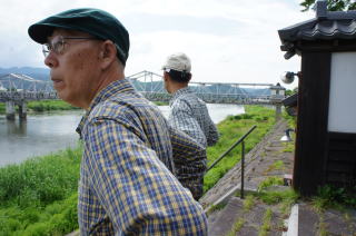 峠を越えて出羽の尾花沢に出ます。芭蕉は尾花沢で、紅花を扱う豪商鈴木清風の元で10日間滞在しました。尾花沢の隣町の大石田は、最上川舟運の内陸での最大の河岸です。芭蕉は山寺に行った後、大石田の先の河岸、合海から最上川を舟で清川まで下り、名句を残しました。 「五月雨を集めて早し最上川」 |