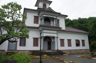 天童にある旧東村山郡役所です。山形県は明治の古い建築をたくさん残しています。初代三島県令が近代化政策を強力に推し進めたその遺産を、今も保存しているのです。 今回訪れた村山地方にも旧東村山郡役所、旧山形県庁、旧山形師範、旧山形医学校・病院など古い建築が博物館として保存されていて、こうしたところを訪れるだけでも、イザベラバードが旅した時代を楽しむことが出来ました。 |