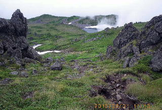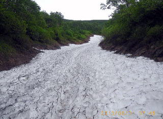 短縮登山口に着くと人々が集まり、「女性2人パーティが戻って来ない。入下山記入ポストの記入もない。途中で追い抜かなかったか?」と問われた。最後の目撃者は11時の私となった。不明パーティの残留男性が「温泉コースの方へ間違って行く可能性」を考え東大雪荘へ向かった。ほどなく女性2人が下山してきた。「話しに夢中で分岐標識を見落とし温泉コースへ行ってしまい、途中で気付いて引き返してきた。」そうだった。朝同行時に、女性の一人の言「あと羅臼岳を登れば日本百名山達成」に、「ご経験をお持ちですね。」と応え「入下山を記入しておけば事が起きても捜索範囲が絞られますね。」と話しておいたのに彼女らは記入していなかった。…居合わせた人が「普段リーダーに従って行動していたところをリーダー不在の解放感で話しに夢中になったのだろう」と言っていた。 |