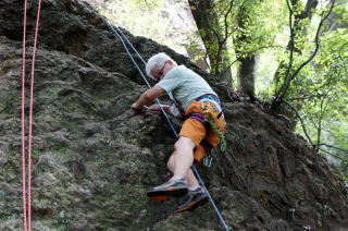 | 今回初めてコーチとして参加した亀田OBです。 | 60歳近いのに流れるようなフォームで登ります。 | |