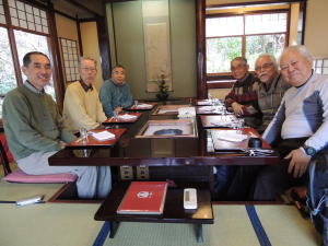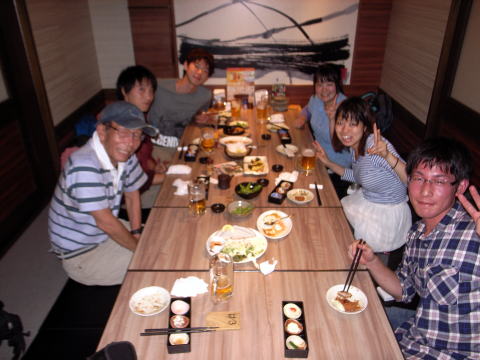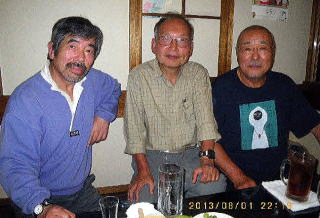 | 左から亀田、井村OB、久須美、山川、渡辺、増田、中戸川、前列は豊田、上田、豊田夫人です。 | |