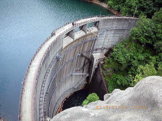 7.26、15;50 奥新冠アーチダム 一際狭まった奥に奥新冠ダムのアーチが喰い込んでいた。奥新冠ダムから道は地形図の径と異なり幌尻湖から離れ徐々に登り、下って新冠幌尻山荘(790m)に着いた(16:50)。山荘は屋根が地面まで伸びた切妻でがっしりしているが床面は傾斜しており同宿者数名は二階に就寝した。 |