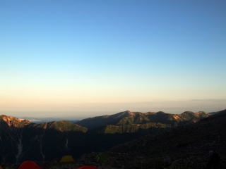 | 前日に赤岳鉱泉天場で幕営 | 朝食はラーメン | 事前予報に反し天候は順調 |