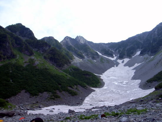 | 学生時代、この辺りは巨大な岩がゴロゴロしていて、涸沢定着の午後は岩の上でトカゲを決め込んでいましたが、いつ頃かゴロゴロしていた岩の堆積は姿を消してしまいました。 | ||