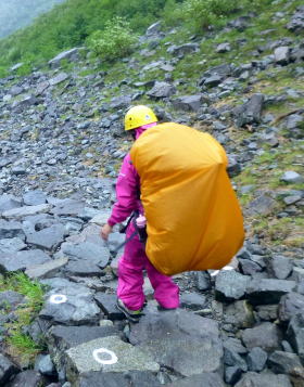 | シュラフ、マット、テント、器材、4日分の食料と燃料、生活用具、登攀用具、50mザイル等で45~60Lのザックがハチキレそうです。 | ||
