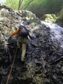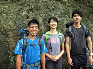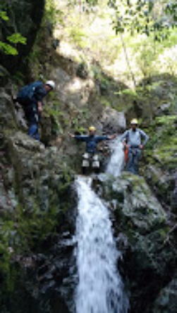 | 富士形の滝を登る松田 | 角田・真藤・松田 |