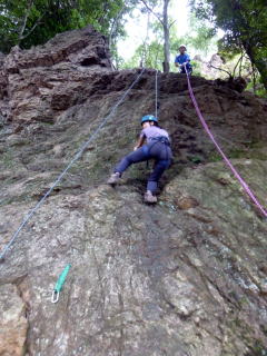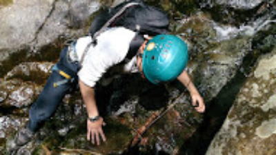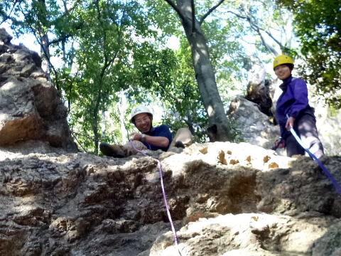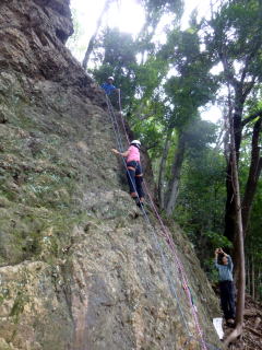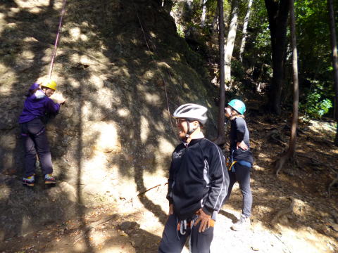 | 初め てのマライアさんもすぐに岩に慣れる 。懸垂下降などの動作もかなりスムーズになる。 | |