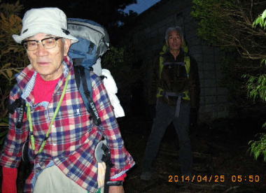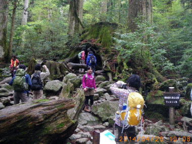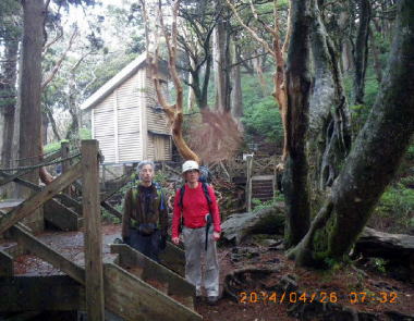 【時期】2014年4月24日(土)〜26日(火) 【行程】東京羽田⇒鹿児島空港⇒屋久島空港(全員集合)⇒いわさきH⇒淀川入口→石塚小屋泊→宮之浦岳→新高塚小屋泊→縄文杉→白谷雲水峡⇒宮之浦港⇒指宿泊⇒知覧⇒鹿児島(解散)⇒羽田 【メンバー】:廣瀬OB、本橋OB、山根、笠原OB、別途山麓行動:廣瀬夫人、山根夫人(敬称略) |