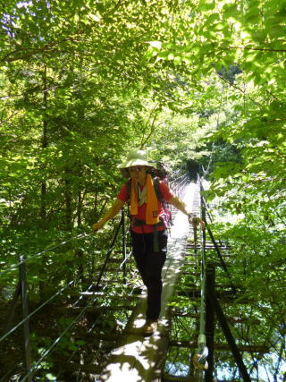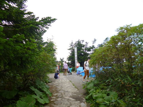 淀川入口(標高1360m)に11:50着くと涼しく駐車数台あった。ご夫人達2名に車を頼んで別れ、男性4名は山道に入った。 |