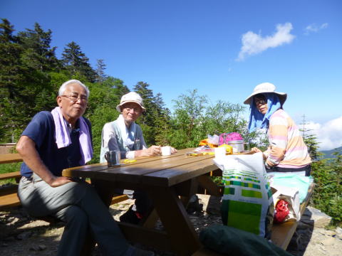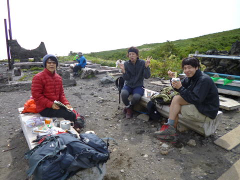 | 豊田OBも登り始めました。 | 昔は重登山靴しかなかったので、フリクションを効かせなければ登れない岩場では苦労させられました。 | 昼食を採ります。 |