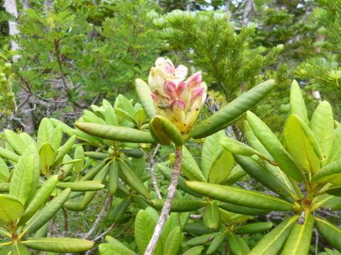 6時10分前に出発したが未だ暗い。東京から経度で9度余り西にあって太陽に向かう時間は約37分遅い計算になる。花之江河まで昨日の道を戻る。屋久の鹿は小柄で傍へ行っても避けてくれない。白骨化した鹿もあった。 |