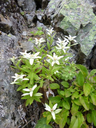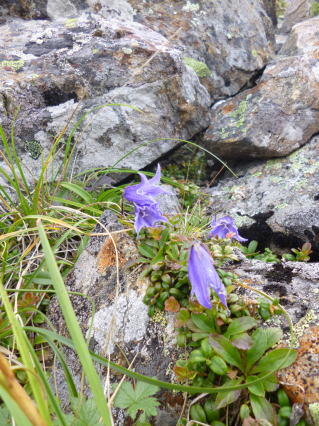 快晴のち曇り 登山者で賑わう鏡平山荘を後にする、木道は霜で滑りやすい。 稜線に出るとミヤマリンドウやウメバチ草などが咲いている。 十時を過ぎると雲が湧きだし、昼近くになると二千五百米から上は雲の中。 |