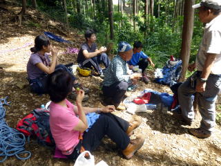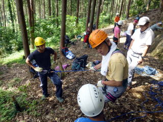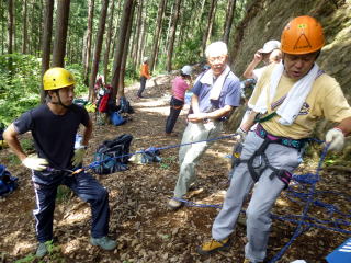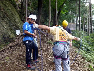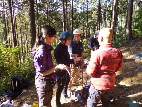 | 確保の支点取り方、自己確保、肩絡み・腰絡み確保等ザイルワーク練習。 | |