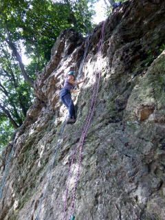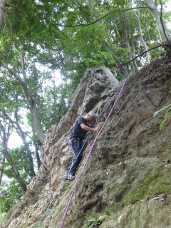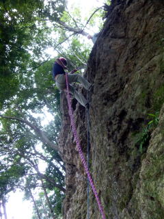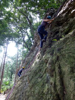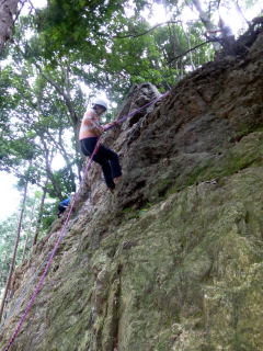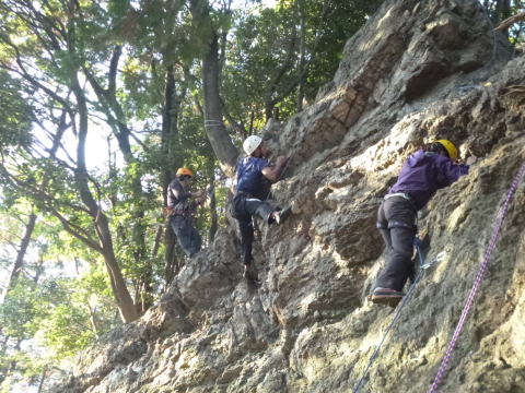 | ランニングビレーの訓練。 | 確保の訓練が終わり、実際にザイルを結んで登ります。 | 上で確保しているので安心感が違います。 |