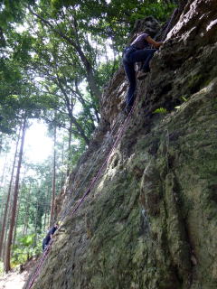 | 大分岩に慣れた今村さんと真藤君、 午後はトップで登る。 | |