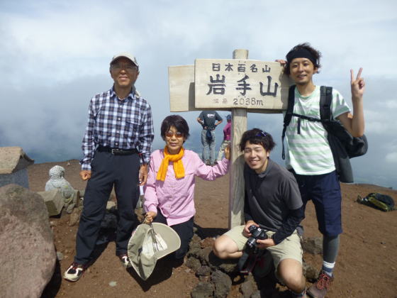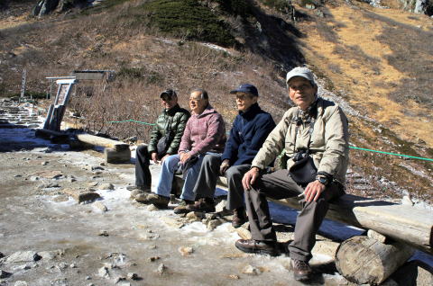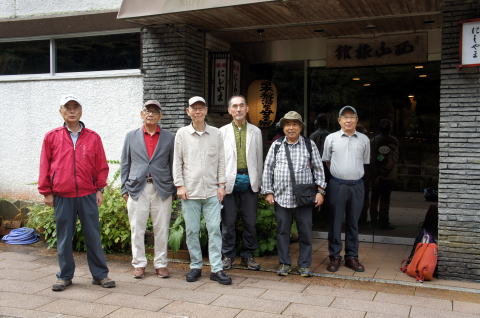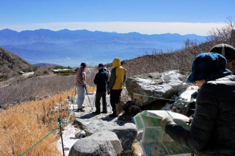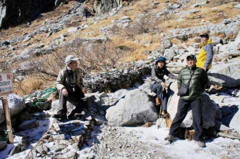 | 左から金子、青木、栗又、宮野、高岡各OBです。 | ここを最高点として降ります。 |