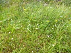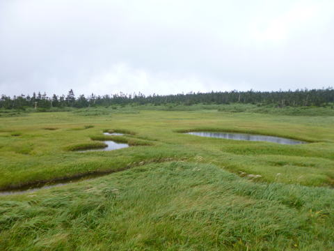 小花之江河 小花之江河の次に花之江河(1630m)があった。これらは日本最南端の高層湿原だそうだ。地形上は鞍部状の広い平地で流れこむ川が無いが水が溜まっている。雨量が多いから雨水だけで涵養されるのだろう。降雨による寝食の激しい屋久島にあってよくこのような平地が残っているものだと感心した。 |