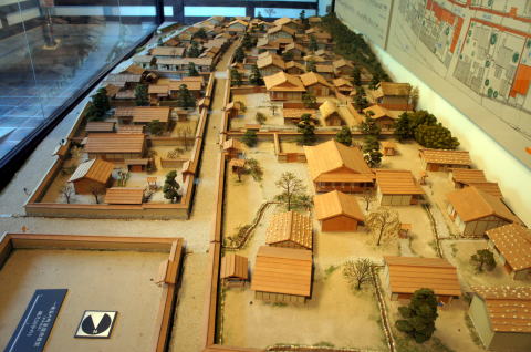 | 九頭竜川の支流、足羽川の畔にある朝倉氏の一乗谷の遺跡です。発掘されてメインの通りは復元されています。信長に跡形もなく滅ばされたと云われていますが、実際に焼打ちしたのは信長に組した平泉寺の僧兵のようです。 | その後、北ノ庄(現福井市)に城を構え越前を領した柴田勝家も、秀吉に滅ばされてしまいました。遺跡ばかりで寂しい気がしますが、越前は京にとって危険な地なのでしょうか。 |