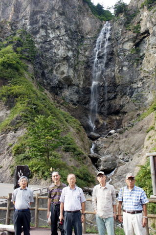 | 歳を重ねると、山のピークを踏むことより、山のめぐみとか山のふもとの人々の営みや、歴史の方に興味が湧いてきます。そんな気持ちを共有している41年同期は、近年、登山よりも川のクルーズや街道の峠越へなどを行っています。今回は、金沢在住の沼田OBと共に、念願だった以前共に登った白山の越前側の九頭竜川流域を回る旅を行いました。白山は加賀、越前、美濃の三国に、手取川、九頭竜川、長良川を通じて、豊富な水や自然の恵みを供給しています。沼田OBの運転で3日間、大型レンタカーで走り回りましたが、大仏のたなごころではありませんが、金沢から出発して帰着するまで、白山の掌を走っていたような気がします。 来春、北陸新幹線も金沢まで開通します。そうなると金沢旅行のリピーターにとって、恐竜博物館や平泉寺、名水の越前大野には当然行くことになり、賑わうことでしょう。そうなる前の一瞬の静けさを狙った訳ではありませんが、奥越前は極めて魅力あふれた地でした。 |