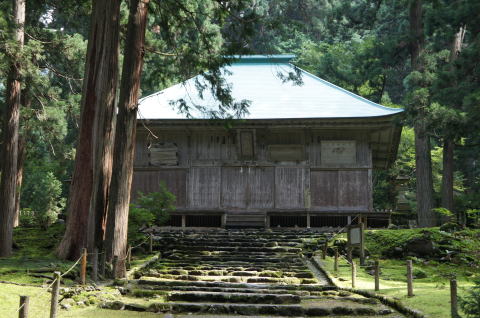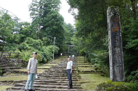 | 九頭竜川上流、越前勝山の白山平泉寺です。 今回の旅の最大の目的地で養老元年(717)に泰澄が創立しました。平泉寺は平安期には比叡山の系列となり、48社6000坊を有し、僧兵8,000人他、約30,000人が居住する一大宗教都市になり、中世には朝倉氏と越前を二分する大武装勢力になったのです。 | しかし猛威を振るった平泉寺も、一向一揆との戦いの結果、1574年灰塵と帰し、中世一大宗教都市は幻になってしまいました。平泉寺滅亡は信長による3年前の比叡山の焼打ちと無縁ではないでしょう。平泉寺は今でも発掘が続けられていますが、南谷には3,600坊跡、北谷には2,400坊跡が発掘されています。 |