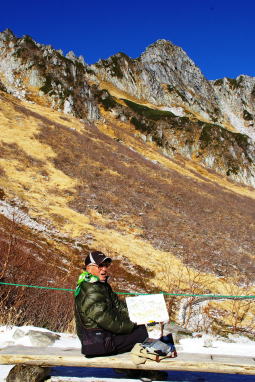 | 瞬く間に周囲が明るくなってきました。 | 栗又OBはスケッチに余念がありません。 |