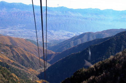 | 新宿から高速バスで駒ケ根ICまで走ります。伊那谷に入ってバスの車窓から木曾駒ヶ岳 が望まれます。 | 駒ケ根ICから路線バスで、ロープウエイ駅のしらび平まで、ここからロープウエイで一気に高度差1000mを上がります。新宿からここまで、ほとんど歩かないで来られます。 |