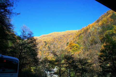 | ホテルで昼食を済ませ、下山します。 | 下は紅葉の真っ最中です。東京に帰る人、これから旅を続ける人、それぞれに分かれて解散しました。 |