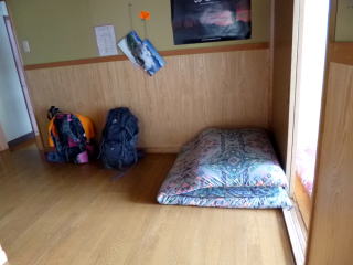 | 廊下の隅に割与えられたスペース | 縦長の四畳の部屋に8人 |