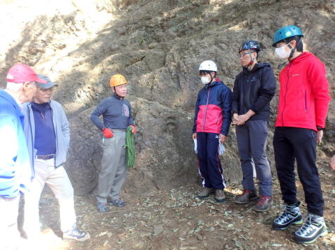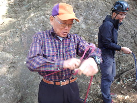 | 滑落停止の手本を新井OBが示します | 現役が従います |