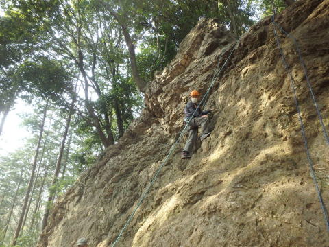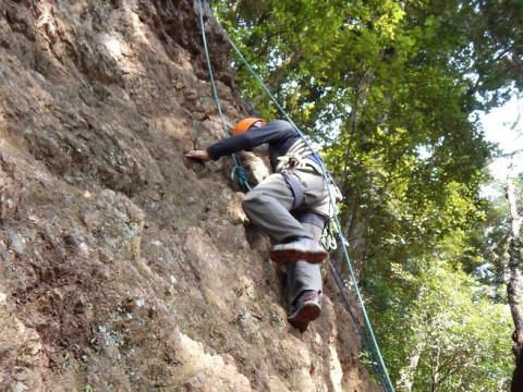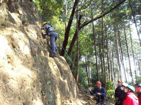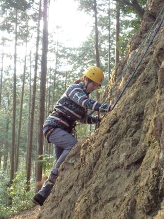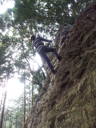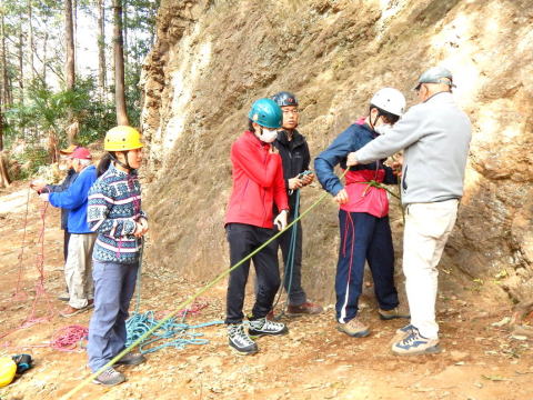 | 本日の仕上げとして、登攀と懸垂下降の練習です(立島) | |