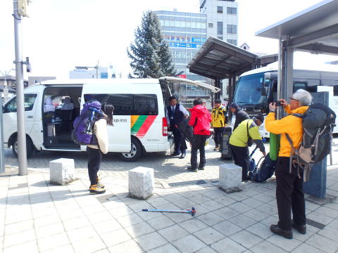 | 11時に茅野駅に集合してタクシーで渋ノ湯に向かう | 渋御殿湯前で身支度を整える |