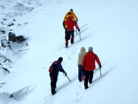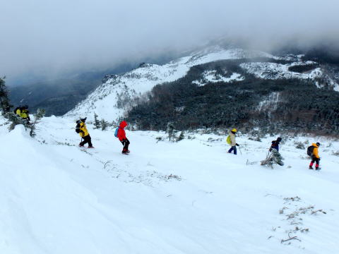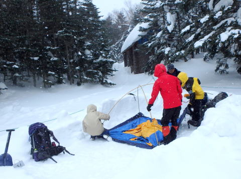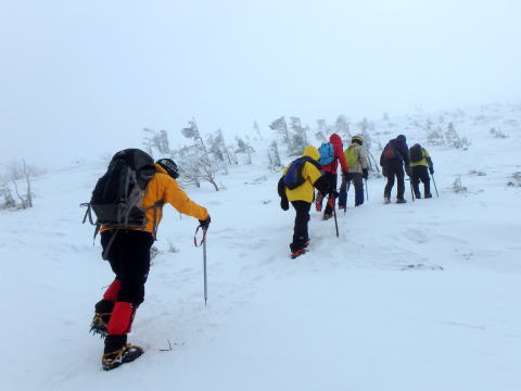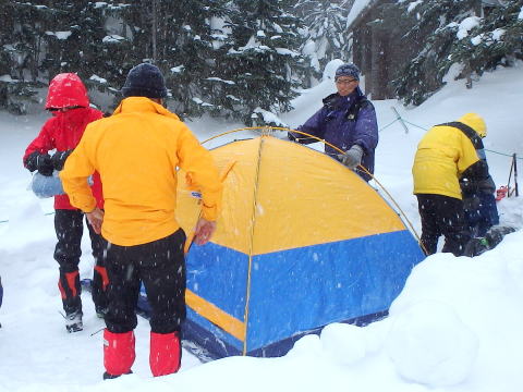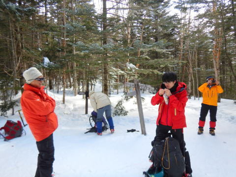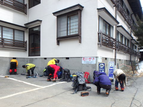 | みな納得の行くまで練習です | 天狗岳に登る身支度です |