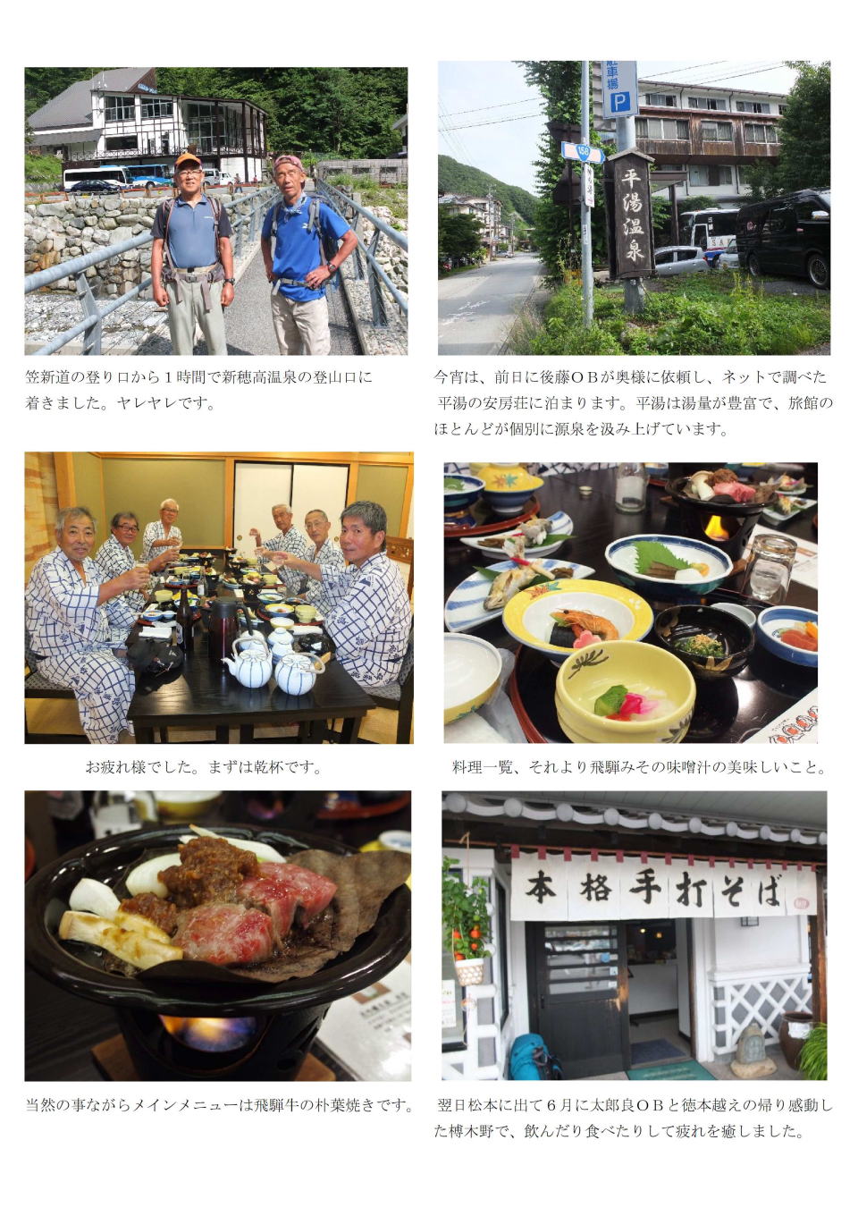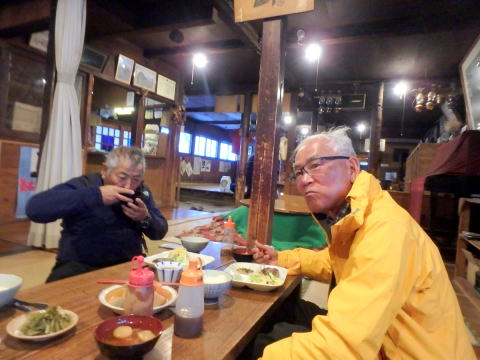 | 渋御殿湯に浸かってさっぱり | 茅野駅前のそば茶屋にて恒例の反省会 |