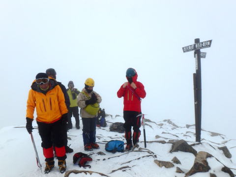 | 東天狗岳到着。全く眺望がなく小休止して下山します | |