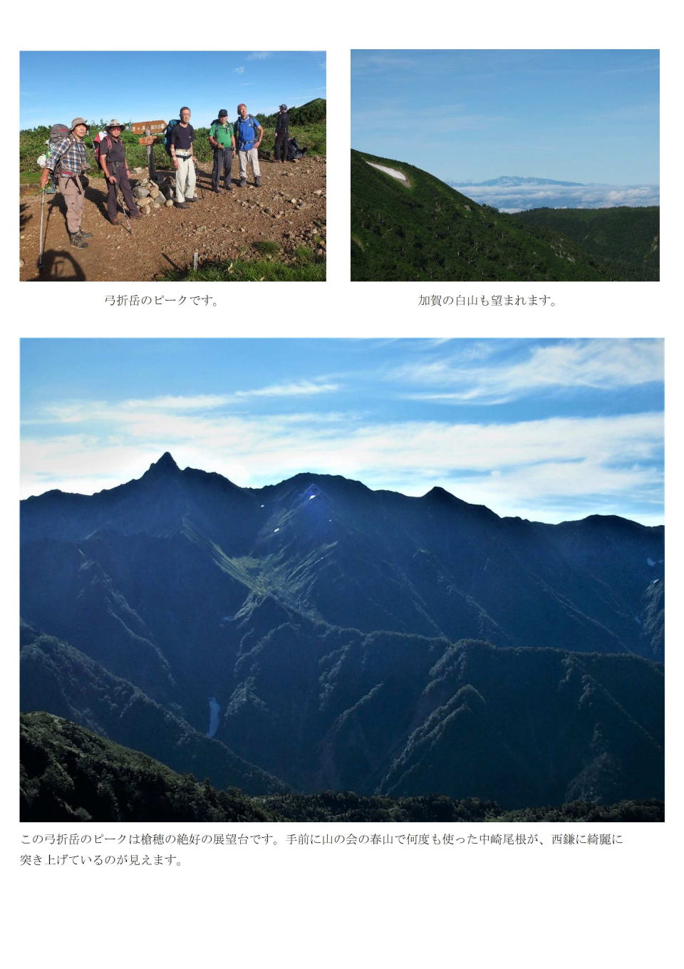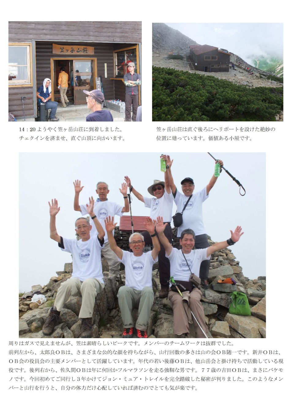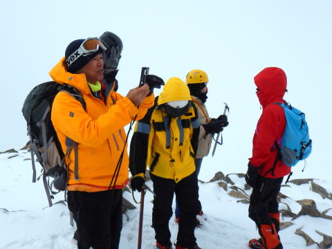 | 北穂高岳山頂、写真左(立田、森村、吉田)、写真右(立田、森村、新井) | |