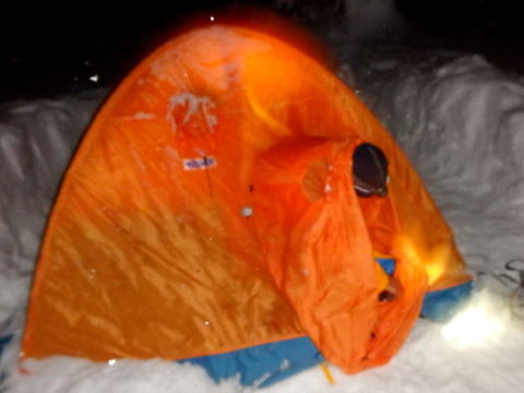 | 早速天幕設営です | 設営完了 |