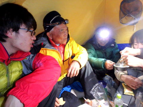 | 夕食後は天幕に集まってお茶とお菓子で歓談です | |