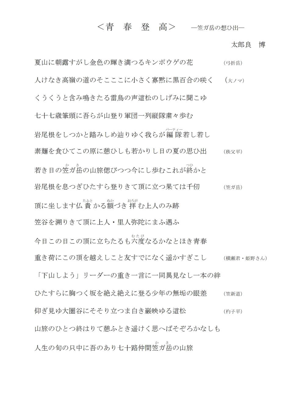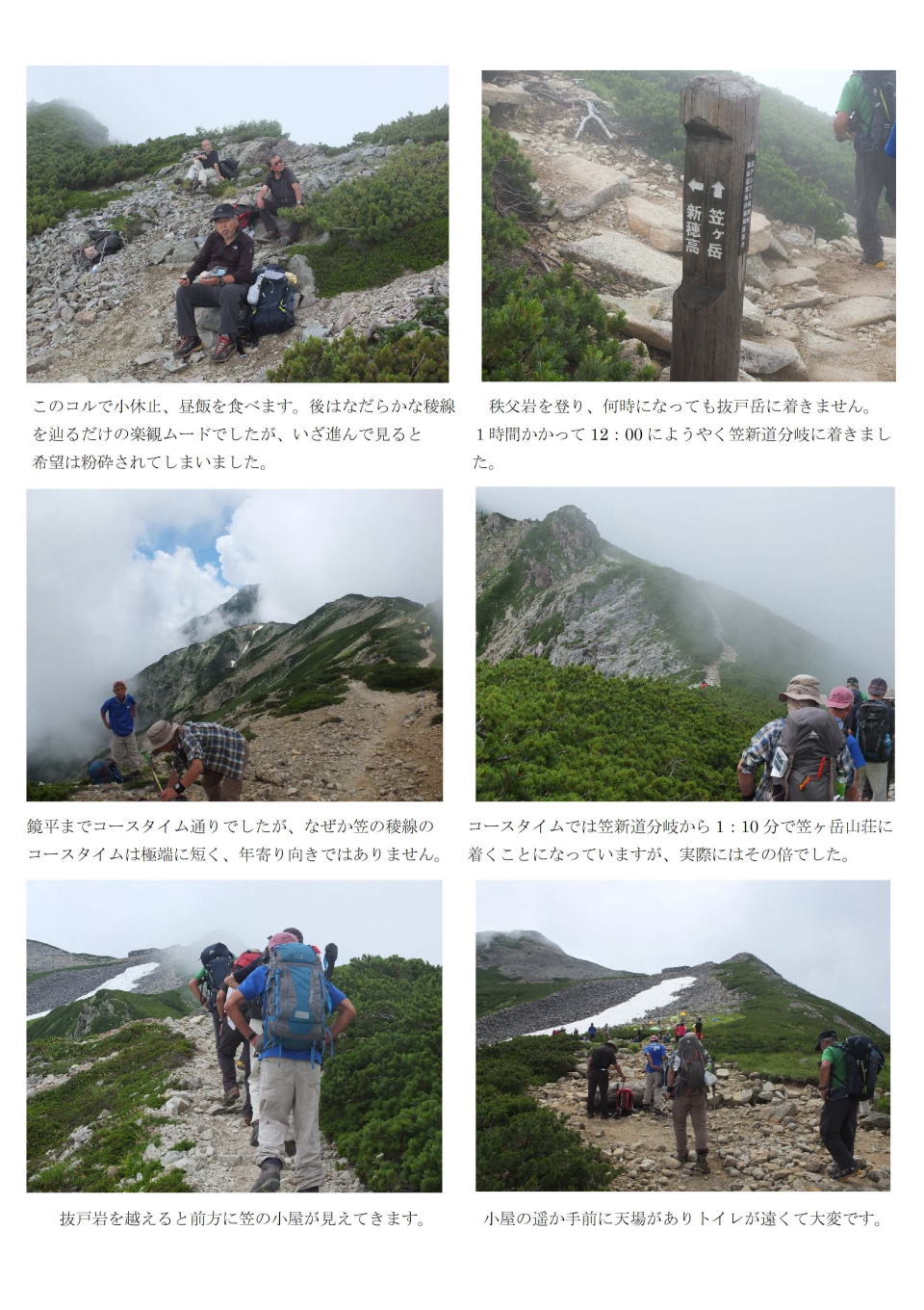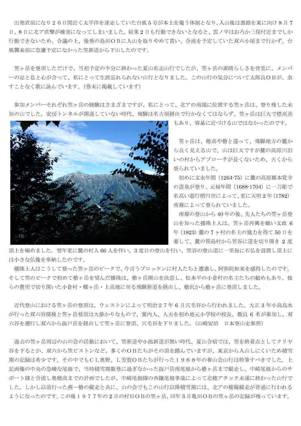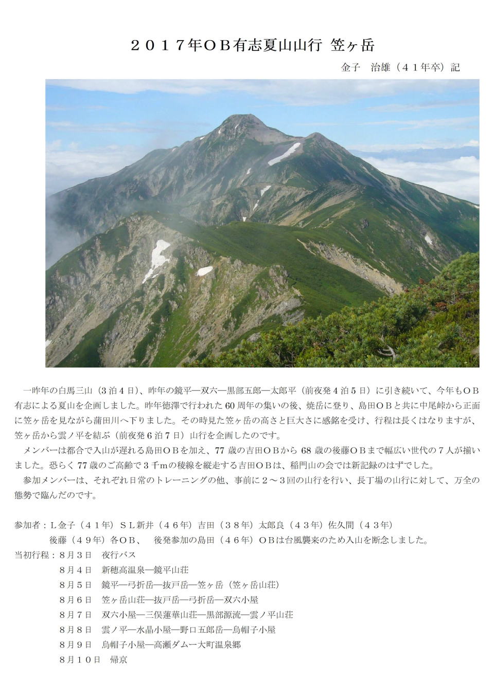 8月3-6日 OB有志夏山山行 笠ヶ岳 |