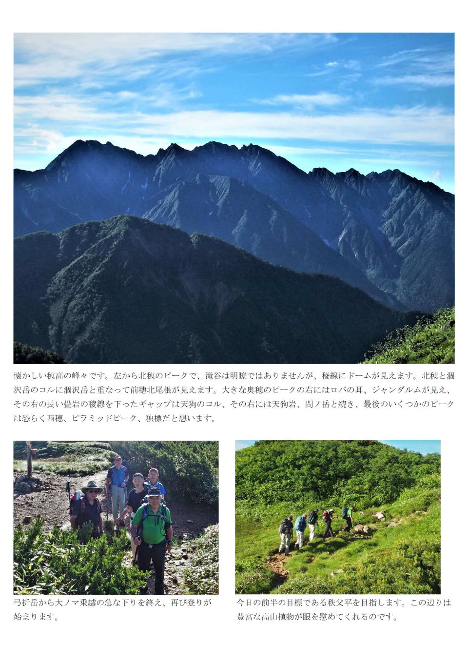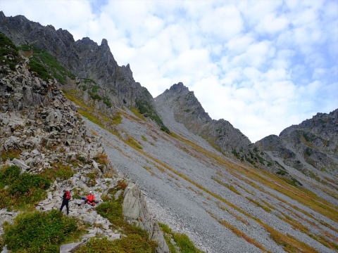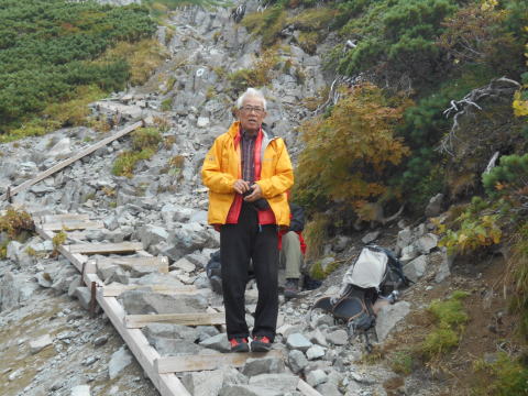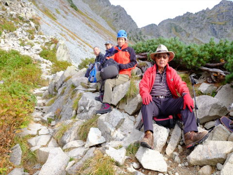 | 前穂北尾根は何時も美しい | 空身とはいえ、高齢者には南陵の登りはきつい |